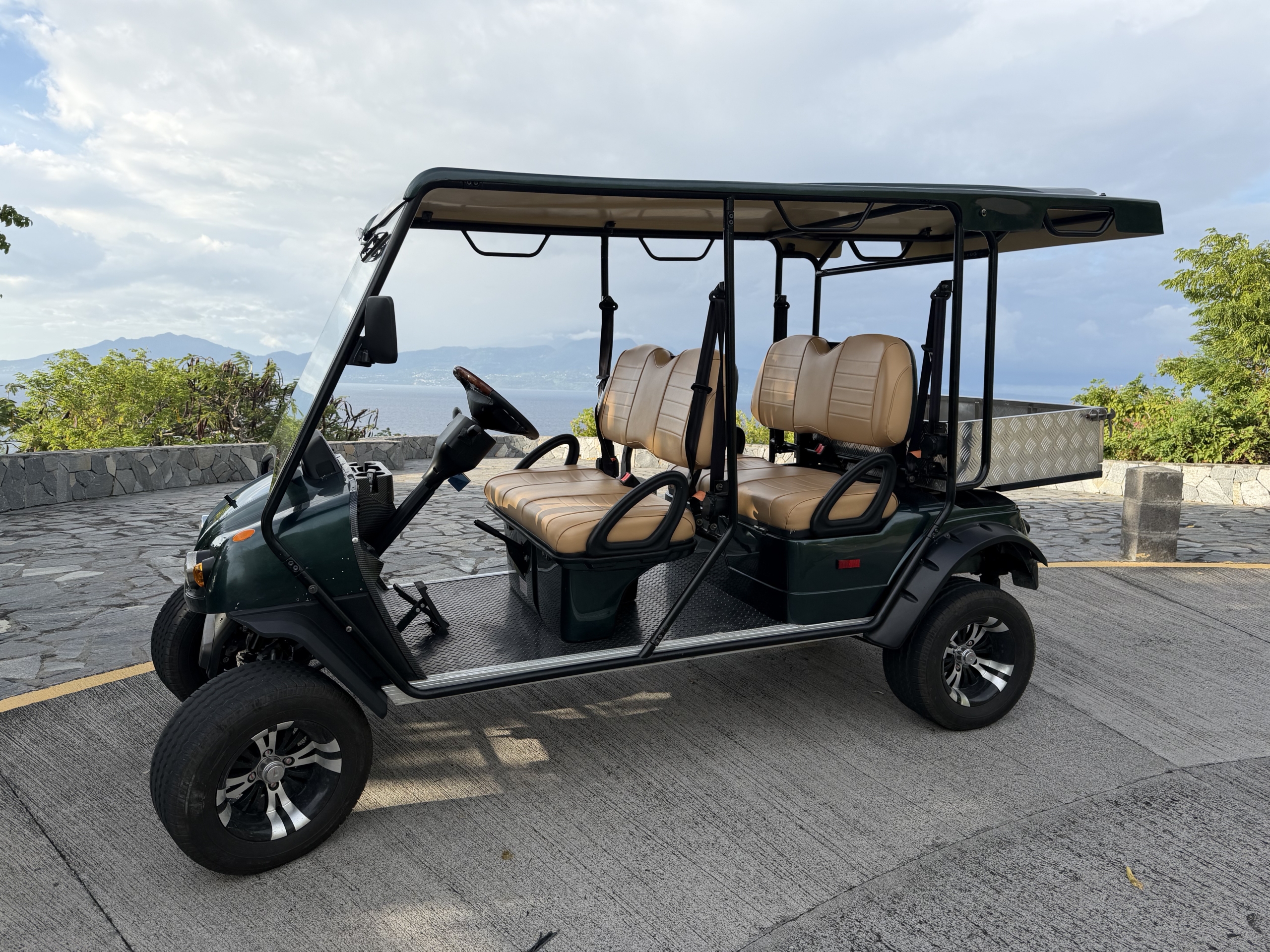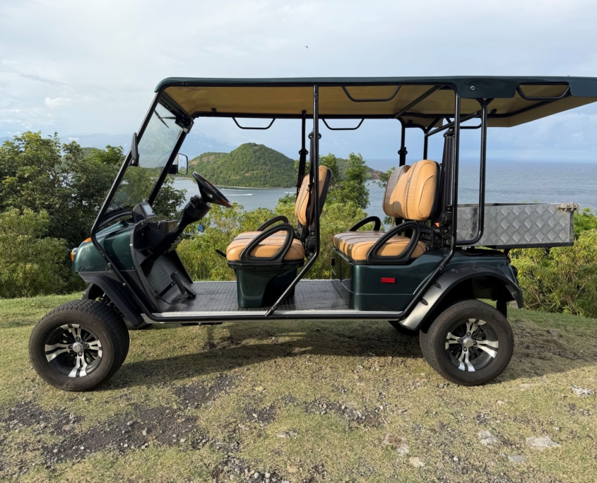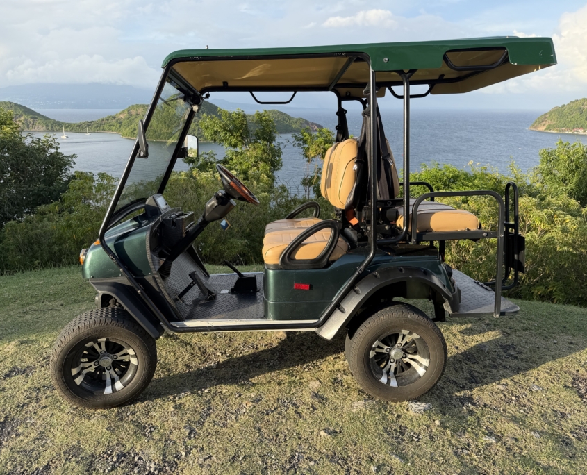 À seulement 50 mètres du débarcadère, Green Car Location vous accueille avec ses voiturettes électriques 4 places courte dos à dos prêtes à vous faire découvrir Terre-de-Haut en toute tranquillité.